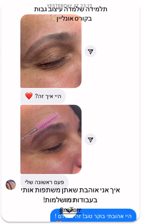 התלמידות שלי כולן בעלות קליניקות מצליחות ומשגשגות בזכות הליווי הצמוד של וההכשרה שיצרתי מכסה את כל הזוויות והנושאים שחשוב לקחת בחשבון כדי להצליח בעולם הביוטי.