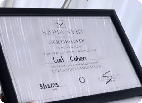 אחרי שתסיימי את כל ההכשרה, תלמדי הכל כמו שצריך ותשלטי ברמה גבוהה מאוד בכל הנושאים שנלמד, תהיי מוכנה לצאת לאוויר ולהתחיל לטפל בלקוחות הראשונים שלך. אבל שנייה לפני שאת מתחילה להביא לקוחות ולקבל מחמאות תקבלי תעודת הסמכה יוקרתית מהאקדמיה של ספיר סוויד.